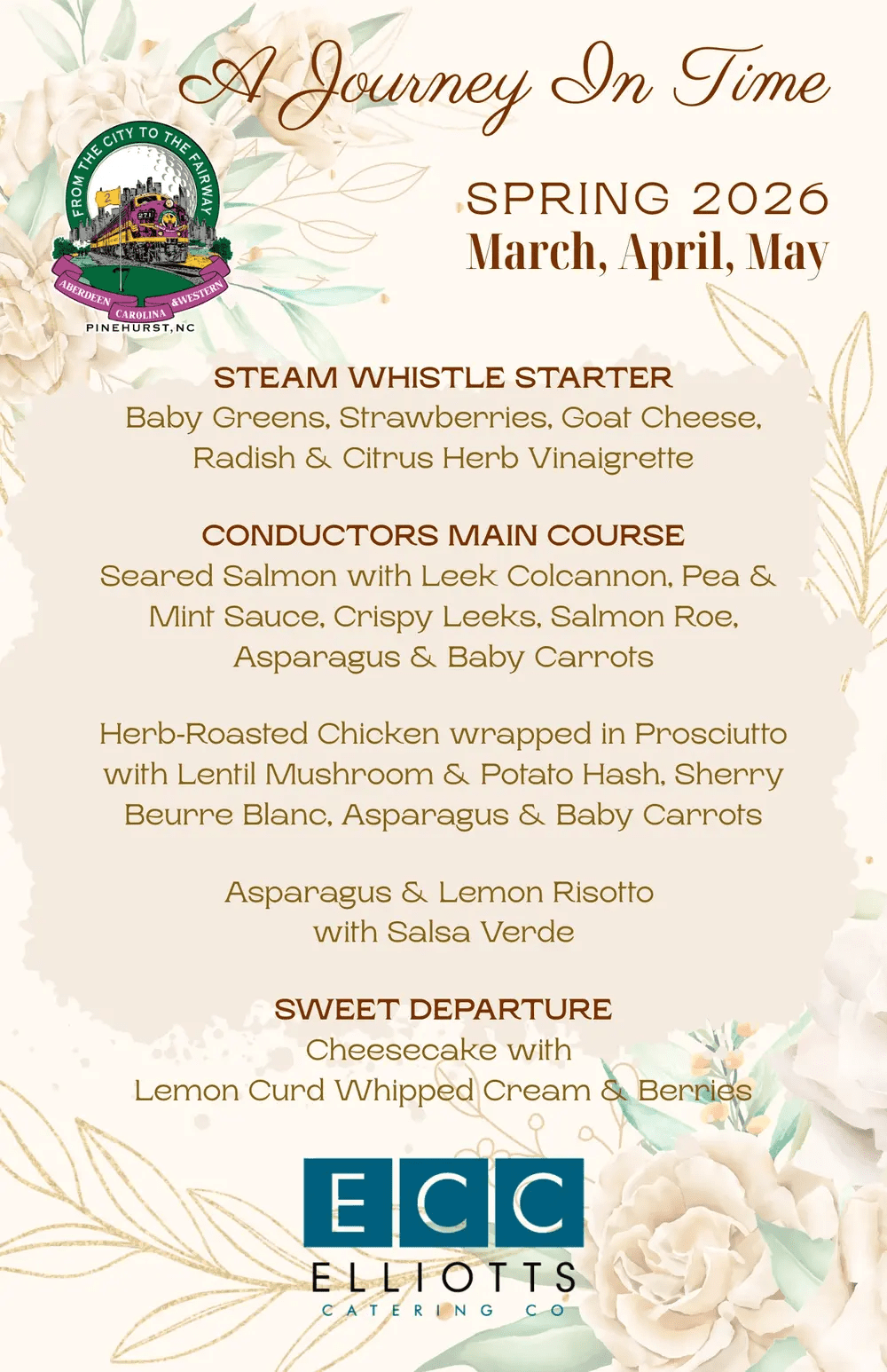 Step back in time and immerse yourself in a memorable classic train social experience as you embark on a journey through the sandhills aboard our passenger coaches. Indulge in cocktails and a savory meal while mingling with fellow travelers and enjoying an enchanting evening on the rails. Bring your own group or join others at a shared table for an opportunity to connect with new people. Duration-2.5 hours