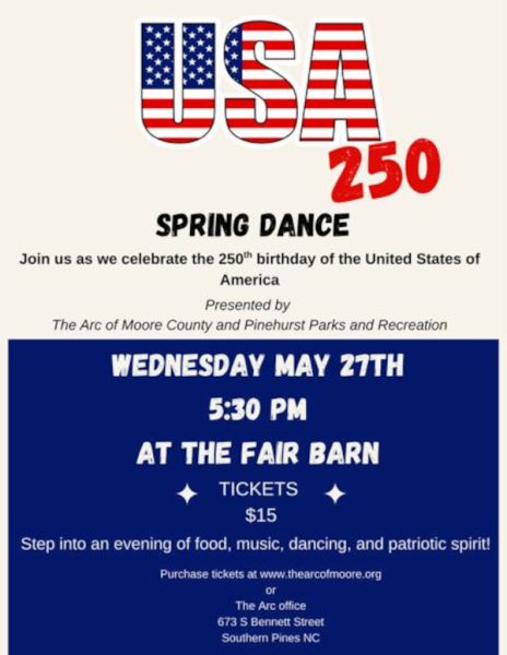 Guests are encouraged to step into an evening filled with food, music, dancing, and patriotic spirit! Tickets for the dance are available for $15 and can be purchased online at www.thearcofmoore.org or in person at The Arc office located at 673 S Bennett Street in Southern Pines.