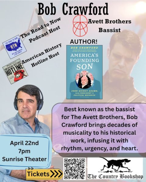 Join as The Country Bookshop is presenting a special evening with Bob Crawford, bassist for the Avett Brothers, at the Sunrise Theater in Southern Pines on Wednesday, April 22nd. The event, which runs from 7:00PM-8:30PM, features a discussion of Crawford’s new book, “America’s Founding Son: John Quincy Adams from President to Political Maverick”. This biography explores the life of John Quincy Adams, highlighting his transition from an unsuccessful presidential reelection to becoming a critical ally in the antislavery cause through grassroots activism.