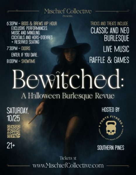 The Mischief Collective is conjuring up a wicked night of glamour, glitter, and ghoulish delights, hosted by Forte Fitness in Southern Pines on Saturday, October 25th! Get ready for The Bewitching Hour, a Halloween party and burlesque revue that mixes classic striptease with a fierce, modern twist! The show begins at 8:00pm, featuring dazzling performances, live music, party games, and a raffle with great prizes. General admission includes a seat and your first drink. For the full experience, arrive early for the VIP Cocktail Hour from 6:30pm- 7:30pm, featuring an exclusive performance, craft cocktails, hors d’oeuvres, music, and games. VIP guests also enjoy premium seating, an extra drink ticket, and a personal charcuterie tray. The cost is $40 with limited spots available. For full details, follow the event website link provided below.