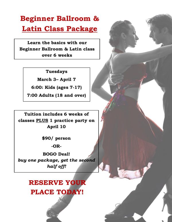 Carolina DanceWorks of Southern Pines will offer beginner level Ballroom & Latin basics over a 6 week period. No experience or partner requires!