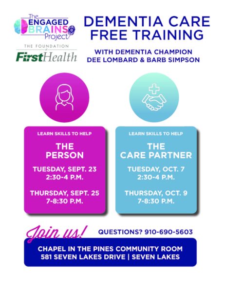 The sessions take place at Chapel in the Pines Community Room, 581 Seven Lakes Drive in Seven Lakes. For additional information, call 910-690-5603.