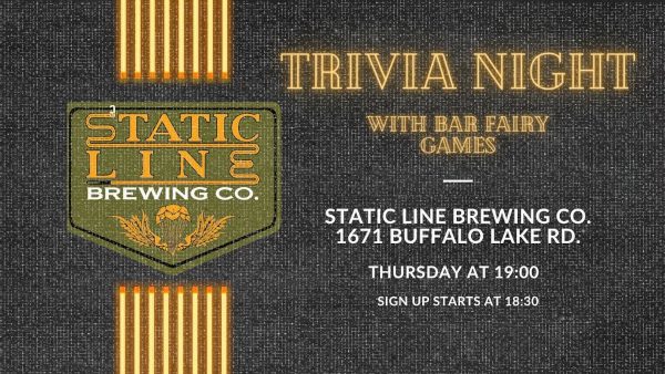 Join at Static Line Brewing Co. for Trivia Night each Thursday at 7:00pm, hosted by Bar Fairy Games! You can enjoy 9+ craft beers brewed right in-house while competing for prizes awarded to the top teams. Local food trucks are typically on site, but guests are also welcome to bring their own snacks to enjoy during the game. Be sure to bring your creativity, as points are sometimes even awarded for the funniest wrong answers! This event is free to play and takes place every Thursday at 7:00pm, with sign-ups beginning at 6:30pm.