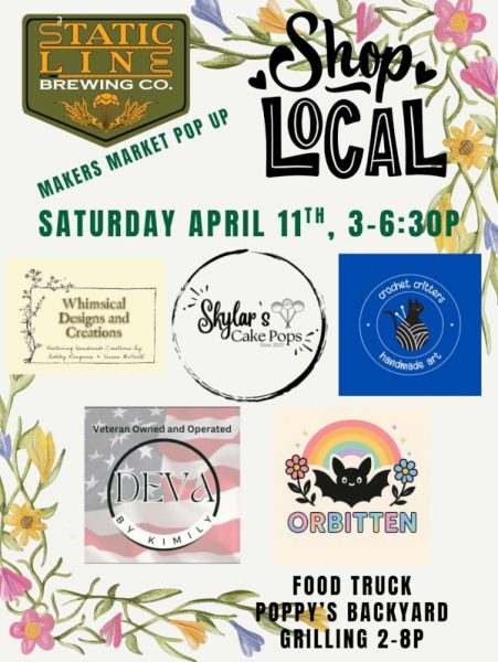 Static Line Brewing Co. is hosting a Shop Local Makers Market Pop Up on Saturday, April 11th, from 3PM-6:30PM. There will be an array of unique local makers, including Whimsical Designs and Creations, Skylar’s Cake Pops, Crochet Critters, Orbitten, and Deva by Kimily. Visitors can explore handcrafted accessories, creative crafts, and one-of-a-kind finds all in one space. Poppy’s Backyard Grilling food truck will be on-site from 2PM-8PM serving up delicious eats.