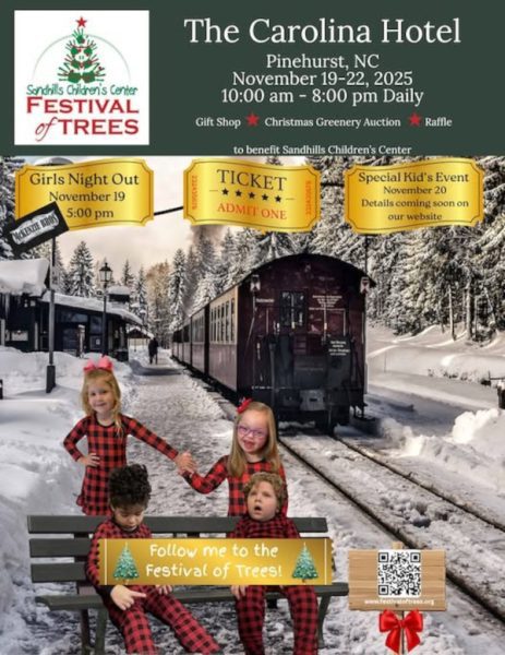 Join for the 29th annual Festival of Trees in support of Sandhills Children’s Center! This magnificent event promises fun for all ages with its stunning exhibit of holiday trees, wreaths and other holiday foliage. Items are available for bidding through an online auction, with proceeds going towards the incredible children at Sandhills Children’s Center. Opportunities to support this event include sponsorships, designing greenery, and volunteering! Contact us if you are interested in supporting this event! Gain admission with a monetary donation at the entrance. This event will be hosted at The Carolina Hotel from November 19th-November 22nd, running 10am-8pm each day. For additional information, follow the event website link provided below.