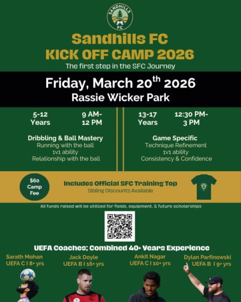 Sandhills FC is hosting its Kick Off Camp 2026 on Friday, March 20th, at Rassie Wicker Park in Pinehurst! This one-day event is designed for all skill levels, from first-time players to competitive athletes, and is led by UEFA-licensed coaches with over 40 years of combined experience.