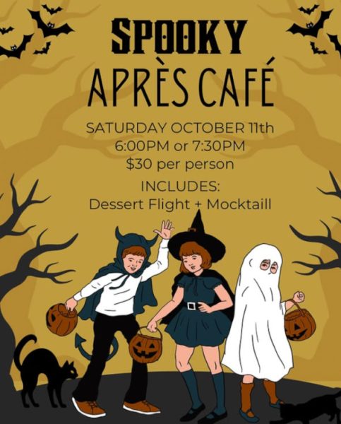 Come out for Maisonette’s Spooky Après Café event on Saturday, October 11th! Enjoy an evening of spooky relaxation, with a themed dessert flight and non-alcoholic cocktail of your choice. Additional drinks will be available for purchase. Bring a friend, date, or your favorite book, and vibe in Maisonette’s spooky glowup. Tickets are $30. For full details and online ticket purchases, follow the event website link provided below.