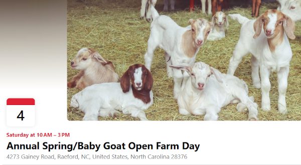 Come join Ithíka Acres Creamery for their annual spring farm day on Saturday, April 4th, from 10AM-3PM! There will be lots of baby goats to cuddle, an Easter egg hunt (1PM), food trucks, vendors, a Fire truck from one of the local departments, and ice cream available for purchase in our store. In addition, Hoke County Farmer’s Market will be joining us and providing lots of local fresh goodness!