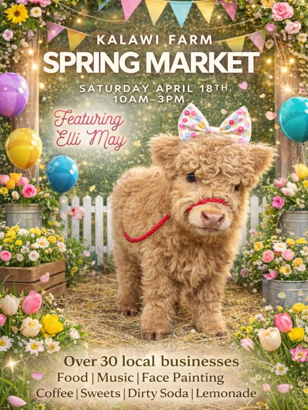 Join as Kalawi Farm is having a Spring Market on Saturday, April 18th, from 10AM-3PM! The market features over 30 local businesses, offering a fantastic shopping experience paired with live music, face painting, and an array of delicious food. You can stay hydrated and fed with a variety of options including coffee, sweets, lemonade, and dirty sodas from local trucks. Don’t miss the highlight of the day—an adorable photo booth featuring the sweet Elli May! Call 910-673-5996 for more information.