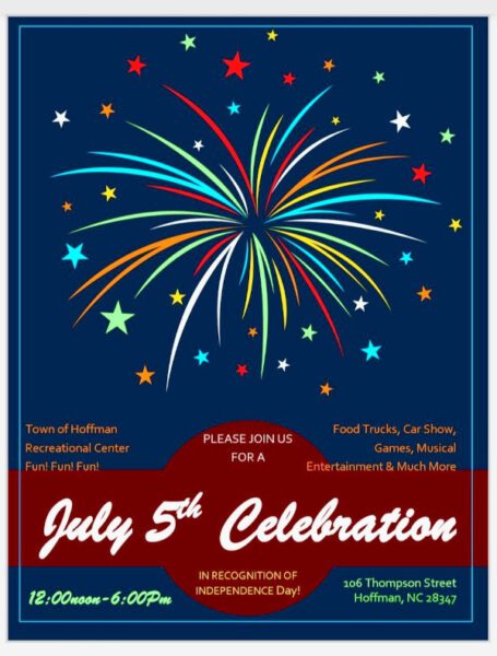 Join the Town of Hoffman for a fun-filled Independence Day celebration on Saturday, July 5th at the Hoffman Recreational Center from 12:00pm-6:00pm. Enjoy food trucks, a car show, games, live music and much more! Then stick around for fireworks launching from the baseball field near the old school building around 9:00pm. Don’t miss this full day of family-friendly fun in recognition of Independence Day.