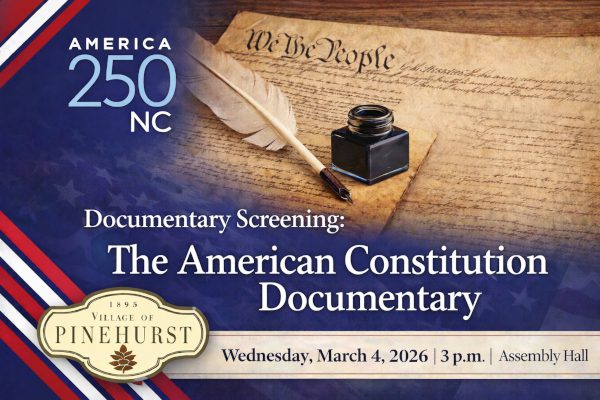 Join the Village of Pinehurst for a public screening of The American Constitution, a documentary exploring the origins and enduring impact of the U.S. Constitution. This free event will take place on Wednesday, March 4th at 3:00pm in the Assembly Hall and is open to all members of the public. The screening is held in recognition of the day the First U.S. Congress convened under the newly ratified Constitution in 1789 — a pivotal moment in our nation’s democratic history. This event is part of Pinehurst’s America 250 commemoration and offers an opportunity to reflect on the principles that continue to shape our government and civic life.