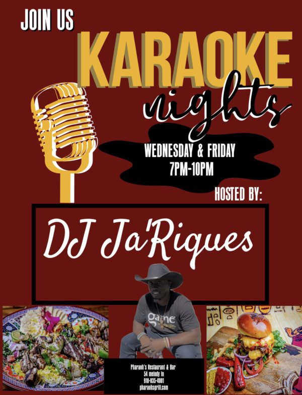 Ready to Sing Your Heart Out? Come out for Karaoke Night at Pharaoh’s Restaurant & Bar in Cameron featuring DJ Ja’Riques