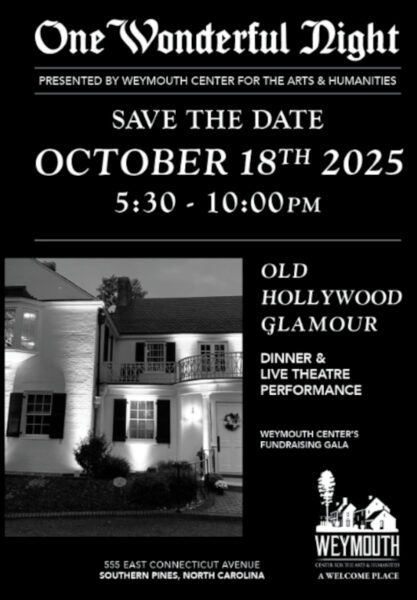 Join Weymouth Center for the Arts & Humanities for “One Wonderful Night.” Weymouth Center’s annual fundraising event is back for another magical night. This year’s theme is Old Hollywood Glamour, taking place on Saturday, October 18th | 5:30pm-10:00pm. Experience an unforgettable evening under the stars at the Weymouth Center’s annual One Wonderful Night Fundraising Gala in the gardens of the historic Boyd House. Enjoy fine dining by Elliotts Catering, sip curated wines from Bacco Selections, and be entertained with a glamorous Hollywood-inspired performance. The night also features both silent and live auctions to support the Center. Individual tickets are $200, with an Early Bird rate of $175 available through September 26th. Tables of eight are $1,500, and ticket sales close October 11th. The event is black tie optional, with black and white attire encouraged. Complimentary valet service provided. To purchase tickets, CLICK HERE.