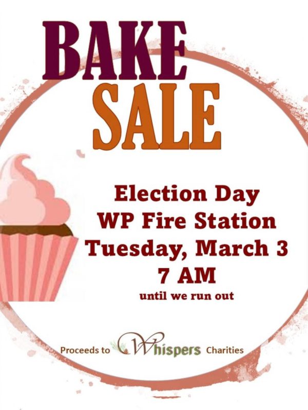 Whispers of Whispering Pines is hosting a Bake Sale on Election Day, Tuesday, March 3rd, at the Whispering Pines Fire Station. The event begins at 7:00AM and will continue until all baked goods are sold out. Proceeds from the sale will benefit Whispers Charities and their community efforts.