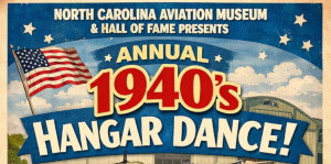 The North Carolina Aviation Museum & Hall of Fame is hosting the annual 1940's Hangar Dance on Saturday, April 25th. The event will take place from 7:00PM-10:00PM at …