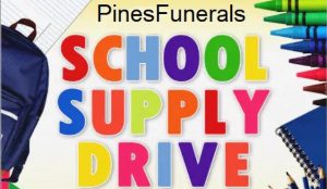 Take part in the PinesFunerals School Supply Drive! Help students in need! Donate new school supplies like paper, pencils, notebooks and more. Drop off supplies Monday-Friday, 8am-5pm, August …