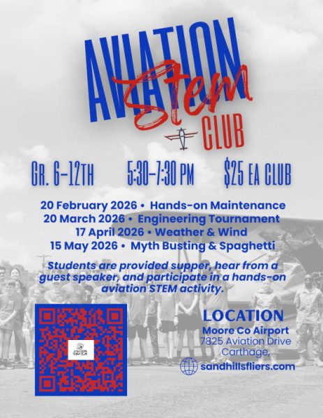 Sandhills Fliers invites students in grades 6-12 to take part in an exciting Aviation STEM Club series this spring, blending hands-on learning with real-world aviation experiences. Each session runs from 5:30pm-7:30pm at Moore County Airport and includes dinner, a guest speaker, and an interactive STEM activity.