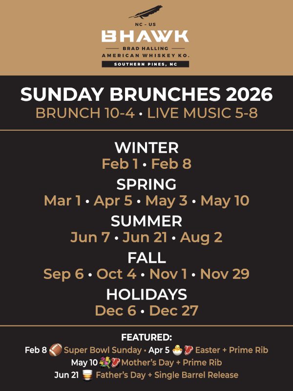 Summer Schedule: The summer series starts on June 7th. It is followed by a special Father’s Day event on June 21st, which includes a Single Barrel Release. The final summer brunch date is August 2nd.