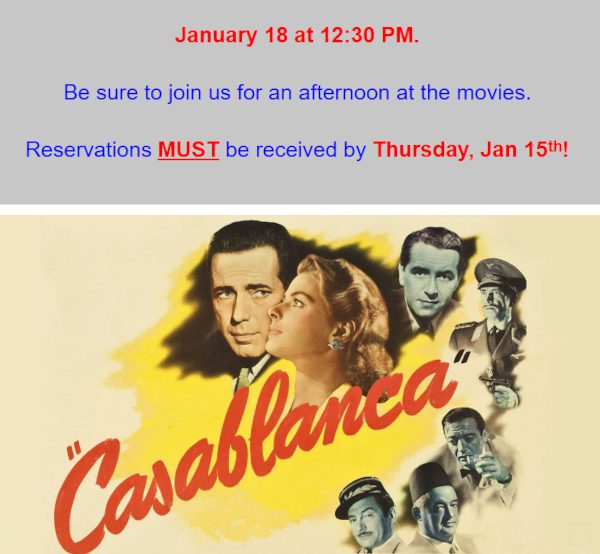 At the Movies Afternoon “Casablanca” (Register by January 15th)