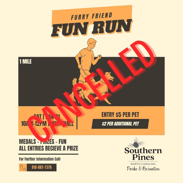 Southern Pines Parks & Recreation Department is holding the 2026 Furry Fun Run on Saturday, January 31st from 10am-12pm at Whitehall. Bring your four-legged friend for exercise and socialization in this fun run through the woods. All entries will receive a participation prize. Medals will be given to 1st-3rd place winners of Fun Run. Registration is required to participate. The cost is $5 for one pet and $2 for each additional pet. For more information, call 910-692-7376.