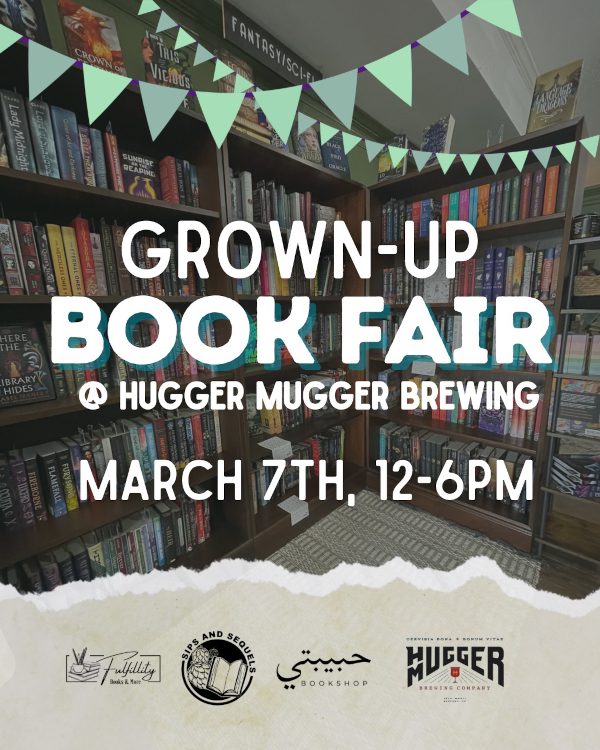 Sips and Sequels is hosting a Grown-Up Book Fair at Hugger Mugger Brewing in Sanford on Saturday, March 7th from 12pm-6pm! Grownup book readers rejoice – finally, a book festival for you! Join three book sellers and some crafty bookish vendors for an afternoon of discovering the latest literature, hearing from authors and grabbing some great beer from the brewery and food from new food truck Fry Fusion NC. Grab your favorite book worm and join us for an afternoon of literary fun! For more information, follow the social media event link provided below.
