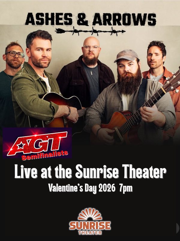 Don’t miss America’s Got Talent semifinalists Ashes & Arrows, live at the Sunrise Theater for a special Valentine’s Day show! The Asheville NC and New Zealand group joined forces to write incredible songs that landed them on America’s Got Talent, where they performed their original song “Wild Horses.” Howie Mandel, Heidi Klum, Sofia Vergara and Simon Cowell all gave them standing ovations. Come see why their music inspires people not to struggle, but to love others! Tickets are $30. To secure your tickets, CLICK HERE.