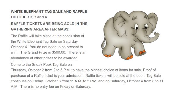 White Elephant Tag Sale and Raffle