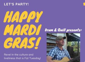 Drum & Quill is hosting their annual Fat Tuesday Party! Matt Foley will be performing from 7:30pm-10:30pm. Join to honor the Fat Tuesday tradition with food/drink specials and …